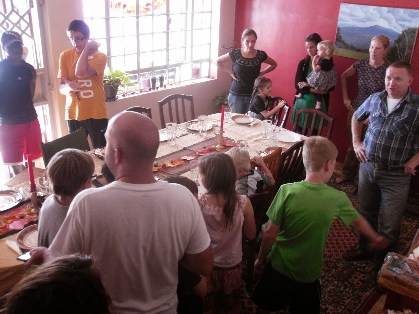 We are so blessed to be part of such an amazing team here. Of course Thanksgiving is not a Kenyan holiday but our team always finds a way to celebrate it in such a fun and memorable way. This year we were blessed to be joined by the Kelly family who are the newest addition to our team. It was a bitter sweet time though as it will be the last Thanksgiving we spend with the Germo family who have been our team leaders since, well, since forever. Dan Germo has accepted a position back in Minnesota at the Bethany home office. We will miss his family terribly and yet we are all at peace that this is God's direction for not only the Germo family but also for Bethany as an organization and for the team here in Kenya. But no worries, we will not be left like sheep without a shepherd. Tim Kelly and his family will be taking over the Germo's leadership position here in Kenya as our team's new leaders. So, with all that we had a fun and memorable Thanksgivings with two quite large turkeys and all the trimmings and 26 people, including children, to help eat it.