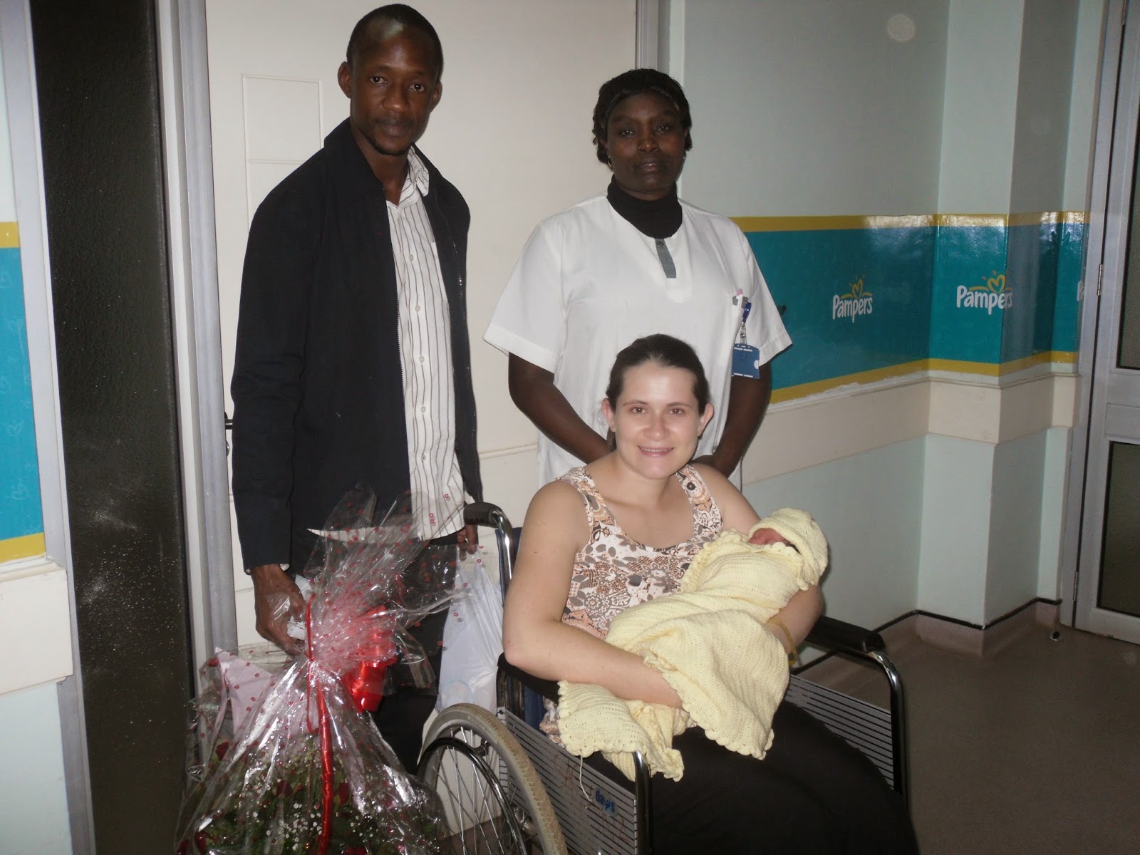 On the night of Thursday February the 13th I was late getting to bed. At almost midnight my head finally hit the pillow as I let out a big sigh happy to finally be in bed. Since John had gotten back from his trip to Kakamega lots had happened. I had had a pre-eclampsia scare with multiple symptoms that when put together were concerning and was told to go on moderate bed rest for the remainder of my pregnancy. Since he had gotten back we were also busy with getting the house set up and ready for baby's arrival which we thought would be around 38 or 39 weeks since a few weeks early births run in my family. But with being on bed rest nesting was challenging for me which left much to John. Anyway, I was finally in bed when all of a sudden I felt like I was peeing myself. I got up and *splash*, my water broke, or should I say it gushed. I stood frozen calling for John who came and took one look and also froze for a moment. Umm, we weren't ready but apparently that does not matter when it comes to baby =). We both took deep breaths and then a wave of excitement, anticipation, and little fear washed over us. We called the midwives to let them know.