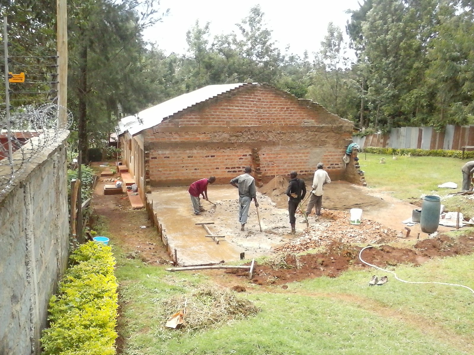 | Laying the foundation slab for the last four units |